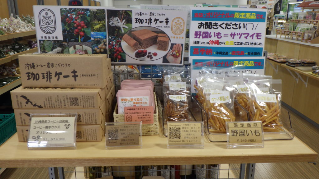 中でも当店オリジナルの”ロケット野国いも”や”珈琲ケーキ”などあまり見かけないお菓子なども置いていて、お土産にもいいですね。