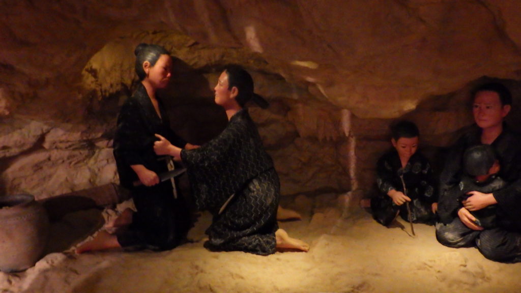 特に、沖縄戦で防空壕として使われていたガマの再現では、薄暗く閉鎖的な空間で家族を守る様子や、