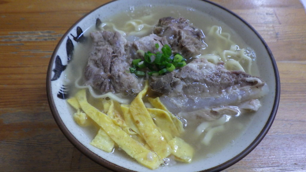 作り方の詳細は企業秘密という、受け継がれてきた秘伝のスープは、満点5点評価をつけさせていただきました。プリプリの軟骨ソーキ、スープに絶妙に絡まる麺も満点に限りなく近い4点評価です。