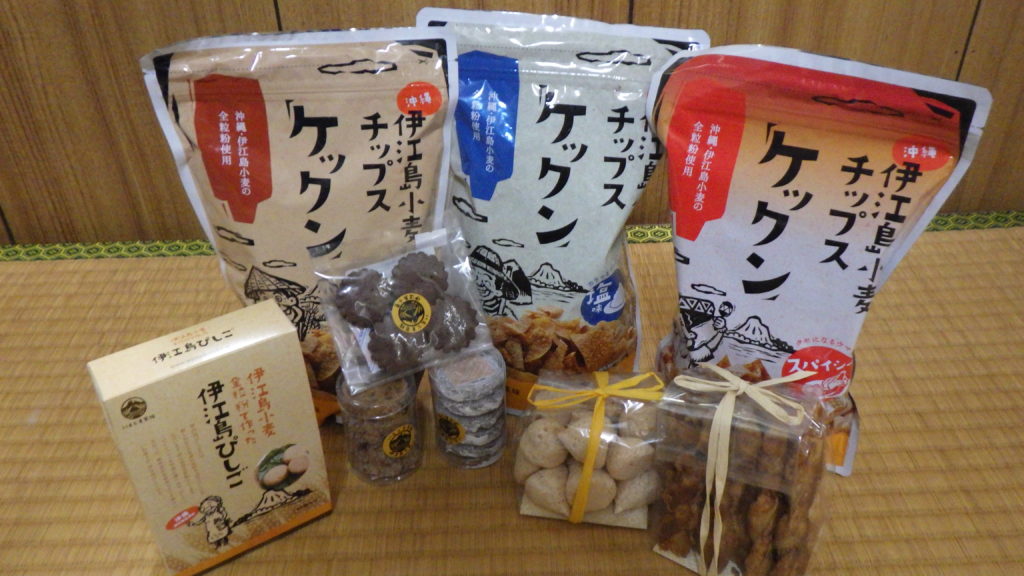 次に、”(株)いえじま家族”の玉城堅徳さんにもお会いしました。戦後減少していた伊江島産小麦の生産・普及に務めた方で、無農薬栽培にこだわり土づくりから始めて、今では会社の6次産業化に成功し、ケックンなどのロングヒット商品も産み出しています。