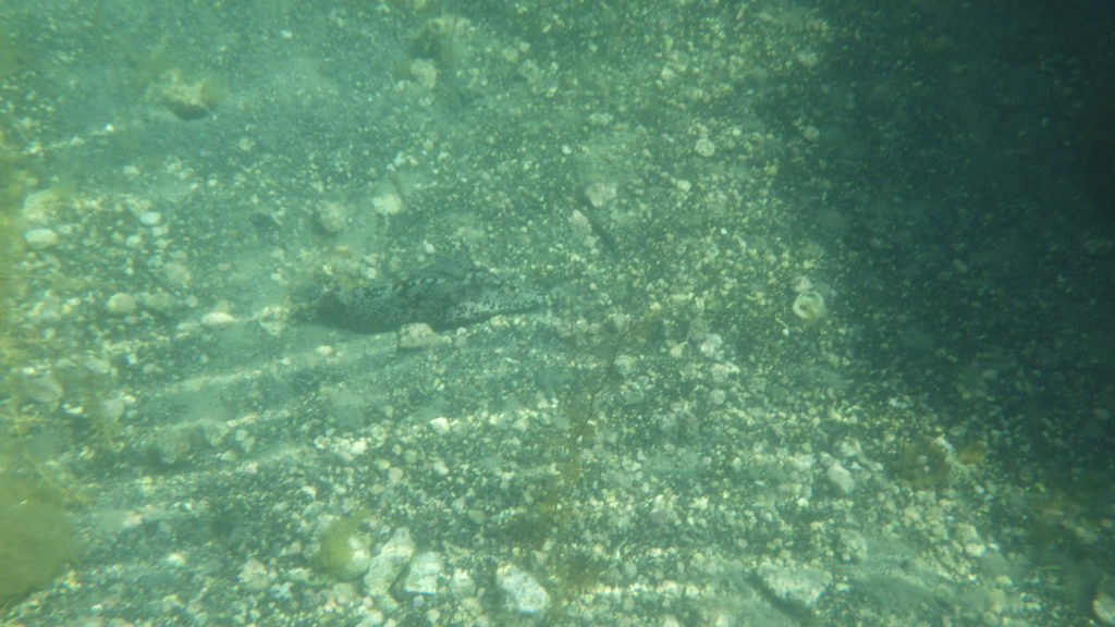 フグは砂地に隠れて見えにくい色をしていますが、スタッフさんが見つけて見やすい位置に舟を操縦してくれました。フグの赤ちゃん(稚魚)もたくさんいました。