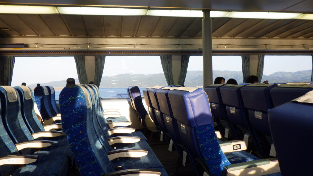 帰りはジェットフォイルで帰って来たので非常に到着が早く感じました。ただし、外に出て海風に当たることはできないので、あくまで素早く移動したいという方にオススメです。