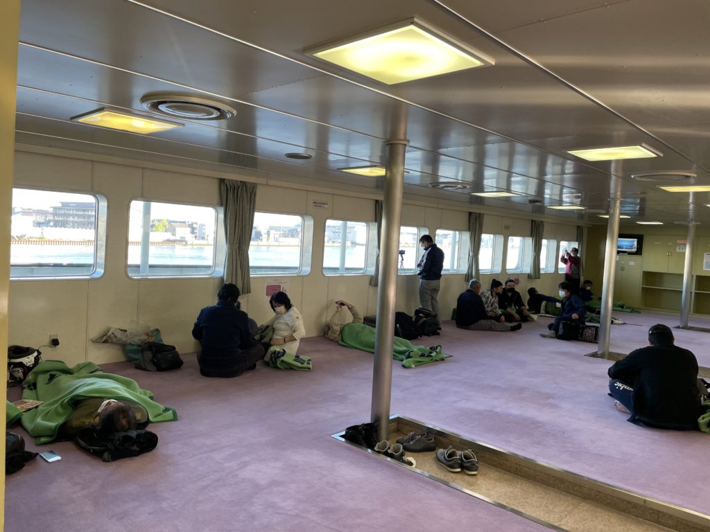 僕は佐渡行きを2等のチケットで取りましたが、共用のざこ寝スペースで仮眠を取る事ができたり、船の外のスペースで海を眺めながらくつろぐことができたので、十分楽しむことができました。