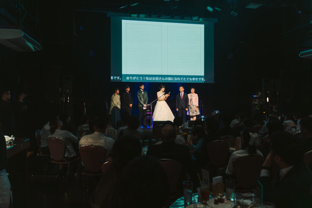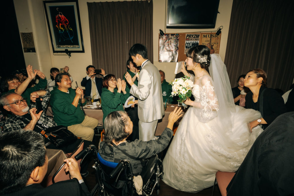 と言って第1部のライブを終えた新郎新婦が観客席に行くと、惜しみない拍手とお祝いの言葉、たくさんの笑顔が2人に向けられた。